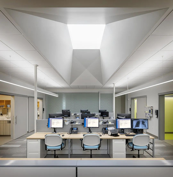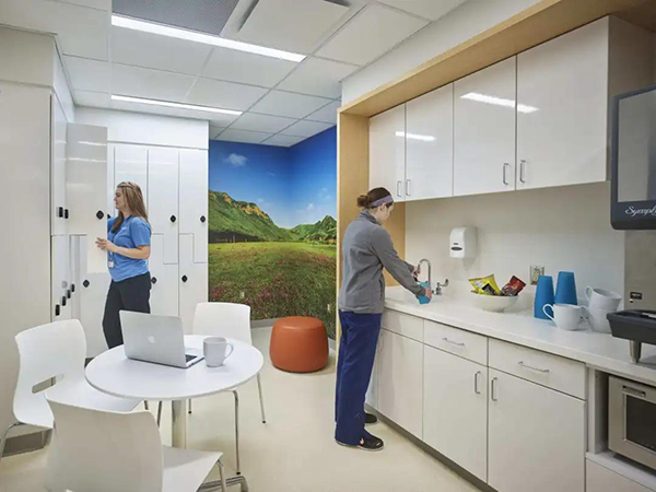 在MBU內,在所有患者和醫護人員區域(包括走廊)開發并實施了支持晝夜節律的專用照明系統。這種有影響力的照明系統的目的是模仿日光,并提供常規的照明,以增強人體的自然24小時周期。