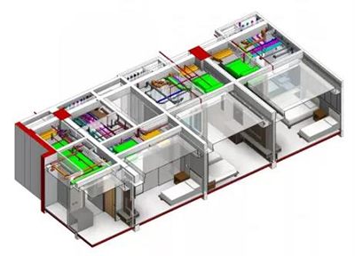 在現代醫療體系中,大量用到智能化電子設備,因而設備點位和預留預埋數量龐大且精度要求高,造成設計工作量巨大,因而需要借助BIM等三維設計工具。同時也要考慮避免在固定結構部件開槽預留,而將設備管線與內裝墻體結合,既可提高構件重復率,也為設備維修和更換提供便利。