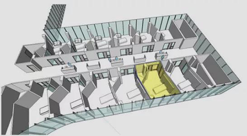 病房由四個模塊組成,分別預制為:衛生間和端墻/基礎墻,以及生活環境調查和機械電氣管道支架模塊(無顯示)。