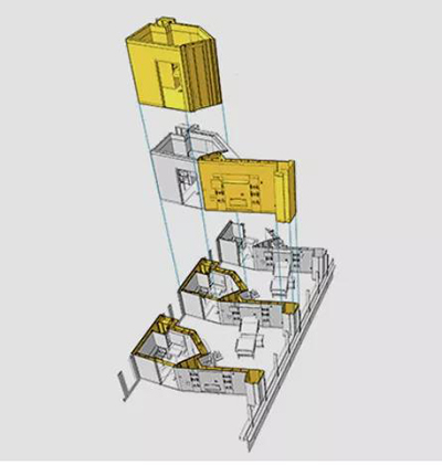 將項目中各個專業的建造對象,分解成適當顆粒度的、可以在工廠中預制加工的構件單元或單元組合,將現場的混凝土澆筑、設備安裝、電氣安裝、裝修等施工過程提前在工廠的車間中通過預制、預組裝、預安裝等手段先期完成。