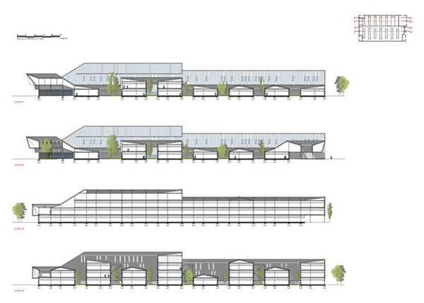 2016年,馬納比省(Manabí)發生毀滅性地震,并前曼塔醫院被徹底摧毀。在此大背景下,急需設施的曼塔市決定建立一個全新的健康中心,一個由PMMT建筑事務所架構創建并開發的參數化方法理念,“流體醫院”應運而生。此前,PMMT已經在厄瓜多爾的馬查拉(Machala, 2016)和普約(Puyo, 2013)設計并建造了另外兩家醫院。這兩座建筑不僅預算緊張,而且為了滿足緊急需求在極短的時間內建成——從開工到竣工不到一年。這種工作流由正確參數定義并組成——既保證了醫療大樓的良好運行,也能夠適應未來的變化:廊道的組織與位置根據空間的用途(公共、私人、維護、用品……)定義,街區與布局的尺度、立面的調整、未來擴建的策略、車輛通道、展示空間安裝的位置以及工程初期至關重要的其他規定。