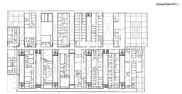 曼塔醫院采用了一種超過了公共規定標準的抗震結構:其外墻設計最小化了災難發生時對人的傷害和使醫院停運的可能。結構中特殊設計的彈簧關節系統,保證了不同組件之間的靈活性,因此,其結構中的受力不會完全被傳遞到建筑外墻與其木結構。此外,建筑外墻使用了輕質高性能的聚碳酸酯材料,通過接縫技術能更加高效的抵御地震對建筑所帶來的影響。在形式層面上,定義建筑表皮的白色與當地建筑的色彩形成鮮明對比。此外,該地塊的正交圖排列了樓層不同的空間:整個醫院被區分為寬闊的流通走廊與開放的候診區。建筑幾個出入口不僅強調了它的通行流線,并允許其用戶以笛卡爾的方式(Cartesian)去享受其內部的四個大窗景。建筑中有一個由天井穿孔的大水平棱鏡,是一個模塊化的、外向的、可模塑的、流體的、柔性的、可互換的、多中心的、扇形化的功能性空間。
