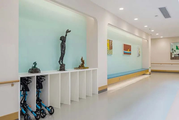因此,室內設計中還應該照顧到患者的心理及社會需求的安全感,提供相應的社交場所,有著正常的人際交往,并盡可能多地接觸自然,陽光、藝術等這些讓人安心快樂、積極向上的元素,創造溫馨舒適,感受更多安全感的療愈康復環境。