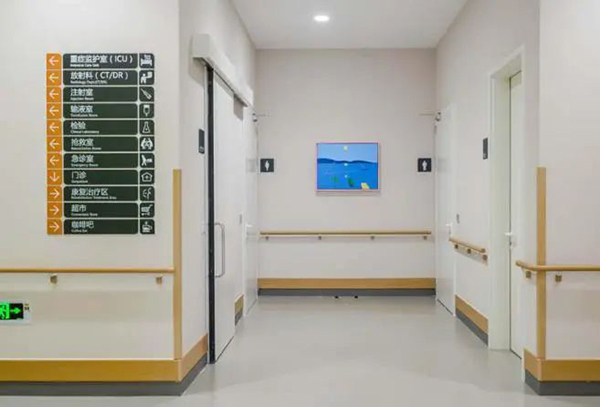 空間讓人的療愈程度與設計帶來的安全感緊密相關。康復空間中多為行動不方便的患者,設計團隊通過簡潔、易達的交通導向與流線,以及在地面、走廊、扶手、設施等方面做了完善的無障礙設計,給患者生理和心理上帶來足夠的安全感。