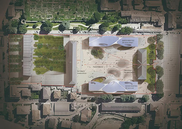 瓦萊達奧斯塔大學新校區位于大區首府奧斯塔市中心,是前軍營建筑群所在地。北以Monte Pasubio為邊界,東到Monte Solarolo,南至共和廣場,西達Monte Vodice。項目通過對新校區進行全新規劃,創建城市開放校園。保護和改造具有重要歷史意義的舊建筑,設計代表性的新建筑。