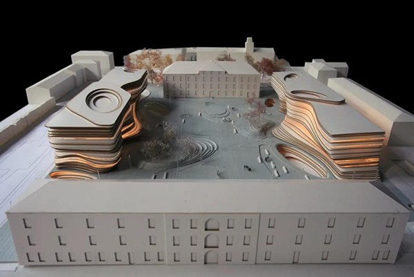 新校區的冰山概念擺脫了原有軍營建筑的僵硬感,既有對歷史建筑的尊重,又有助于城市記憶。同時,設計從植物界的有機關系中汲取智慧,校園建筑在保持相對獨立的基礎上又互相關聯,與環境和城市融為一體。校園規劃在尊重原來平面布局的基礎上,徹底改變了整體分布,進行有機的規劃。設計鼓勵雙向交流及互動,大量的公共空間以靈活有效的方式面向城市開放,在便于學院的教學活動的同時滿足城市公共功能需求,帶來社會附加值。