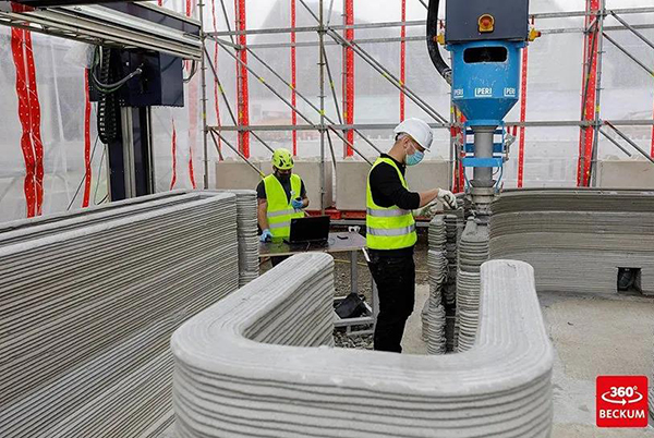 PERI在北萊茵-威斯特法倫州的貝庫姆建造德國第一座3D打印的居民樓。該房屋由兩層獨立式房屋組成,每層樓的居住空間約為80平方米,并使用3D建筑打印機進行建造。
