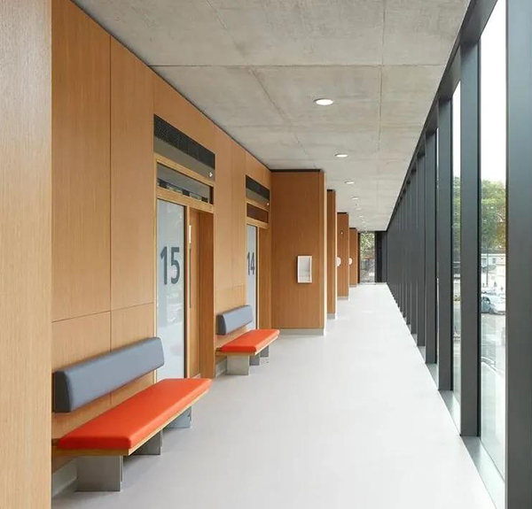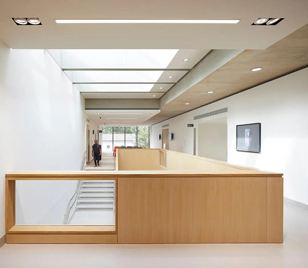 患者、臨床醫生和學者的健康至關重要,建筑采用了非臨床色調的裸露混凝土和天然橡木,營造出寬敞和慷慨的感覺。