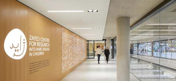扎耶德兒童罕見病研究中心由阿拉伯聯合酋長國創始人、已故酋長扎耶德·本·蘇丹·阿勒納哈揚的妻子謝赫·法蒂瑪·本特·穆巴拉克殿下于2014年捐贈6000萬英鎊建成。