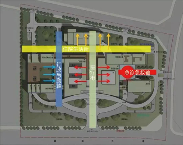 車行人行都可獨(dú)立進(jìn)入,急救流線也與社會車輛流線分開,避免交叉院內(nèi)其他流線。