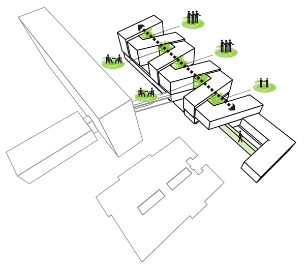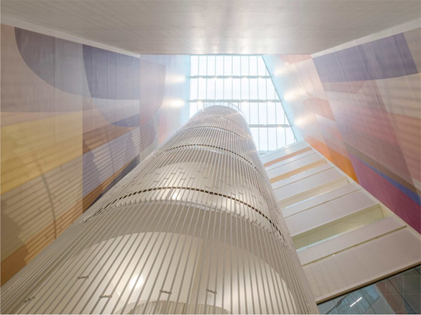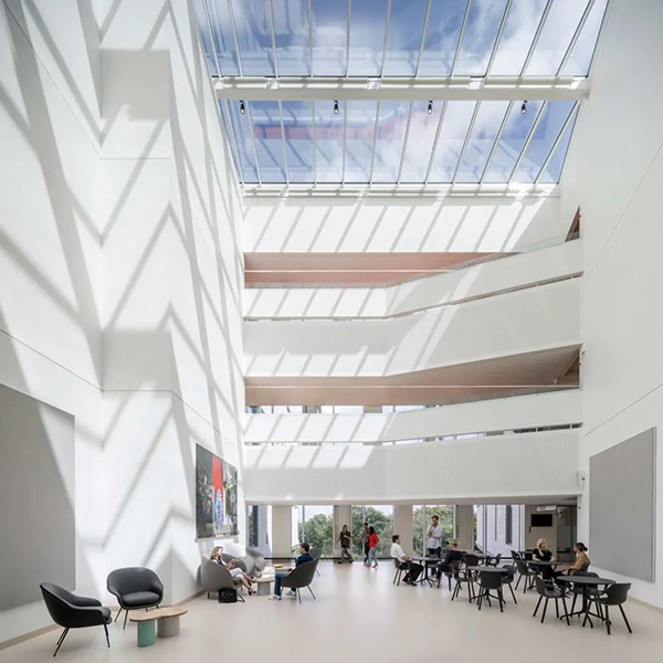 建筑基于一個簡單而有效的設計原理:一系列折疊的V型結構,這些結構通過橫向連接捆綁在一起。這種獨特的形狀為患者創造了五個休閑中庭以及大型醫院的定位點。