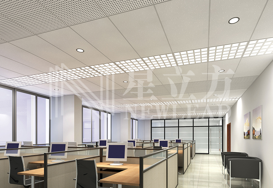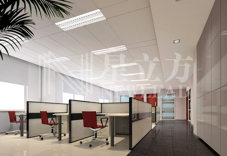 大辦公室頂上空間的布局,負離子生態硅晶吊頂系統也可以滿足,不僅營造了時尚大氣的裝飾性需求,其獨有的負氧離子發生功能更帶給人清新、舒適的感受