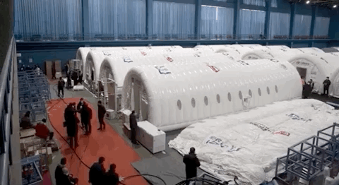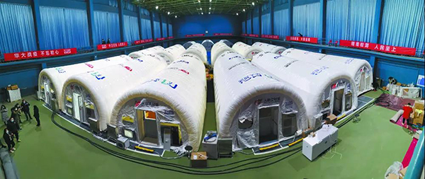 此次馳援河北的高通量氣膜“火眼”實驗室由12艙“火眼”實驗室(氣膜版)和3艙快裝式負壓硬氣膜“火眼”組成。