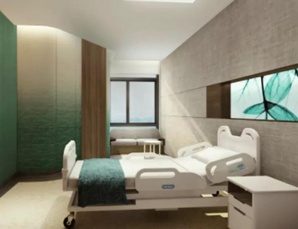現代病房型制一般有 3 人間、2 人間、單人間以及少數多人間,通常以 3 人間和 2 人間為主,病床設置床頭柜和壁柜。多數窗戶旁邊設置帶有邊桌的座椅。墻面設置設備帶,特殊加護病房配有醫療器械。隨著經濟和社會的發展和對人性化的追求,病房開始向酒店客房式設計方向發展,色彩多以白色、淡藍色、灰綠色、米黃色為主,凸顯住院環境的整潔衛生,更有利于患者的內心安寧。材質方面也與病房主基調相配合,家具、軟裝等設施偶有原木等天然暖性材質,以增加白基調房間的暖意,體現人文關懷。