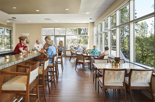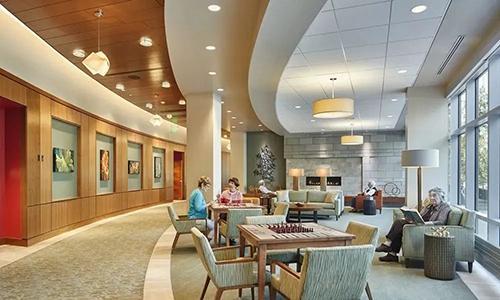 餐廳、社交、娛樂等日常起居空間的位置盡可能固定,內部的布局和裝飾要長期保持不變。不要把日常活動安排在多功能空間中,那里的家具布置和裝飾會經常隨著活動和宴會的不同而調整。持續感和一致性對失智癥居民非常重要,如果他們熟悉的空間位置移動了或者被用作另一種功能,比如游戲室變成了圖書館,或餐廳變成了宴會廳,他們會產生緊張、焦慮、憤怒等一系列負面情緒和行為。