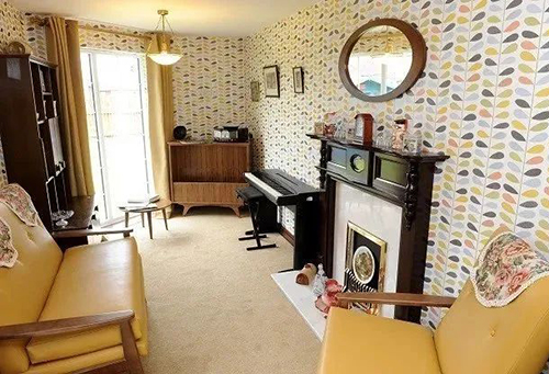 每個人對家的感知都不同,但是我們對家和熟悉感的渴望是普世的。物理空間本身不足以構成家,但是有地域特色,符合居民年輕時期美學標準的療愈空間更容易被接納,通過使用當地的材質、肌理和圖案與失智癥老人的回憶產生共鳴。除了自由裝飾自己的房間之外,建議在主要社交空間附近創造一系列小尺度的半私密空間,并允許居民對其進行自由“改造”,比如在墻上掛自己喜歡的畫,按照自己的喜好調節光線,把自己的毛毯鋪在沙發上等等。