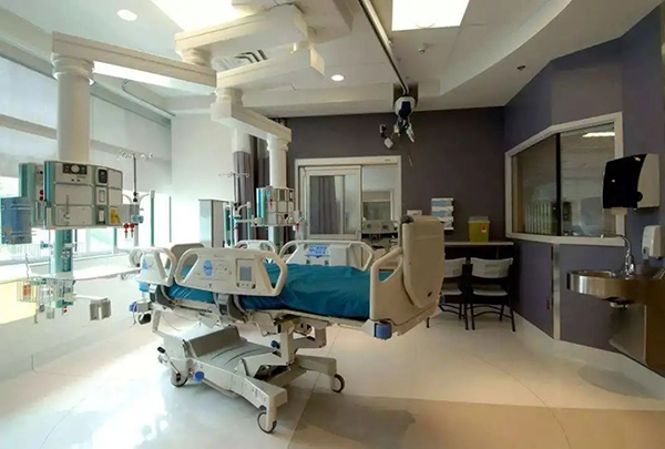 ICU任何時候都必須保持合適、安全的空氣質量。當ICU采用普通空調時,系統需連續運行,病室送風量不宜低于6次/h,為確保空氣的新鮮度新風量不宜低于2次/h。普通空調系統宜采用上送下回的氣流組織形式,送風氣流不宜直吹病人頭部。每張病床均不應處于其他病床的下風側。需設置排風系統,排風(或回風)口應設在病床的附近;當采用潔凈用房時宜用Ⅲ或Ⅳ級標準設計,醫療區域宜設置獨立的凈化空調系統,病室對走廊或走廊對外界宜維持不小于5Pa正壓。