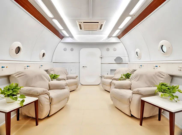 高壓氧是一種運用普遍的康復治療手段,很多醫(yī)院都有高壓氧艙,而北京和睦家康復醫(yī)院的高壓氧艙卻與眾不同,不僅輪椅和平車可以進入,而且艙內的座椅都是舒適的沙發(fā)椅,提高了患者的舒適度。更貼心的是,艙內還設有洗手間,因為患者接受高壓氧治療時,要在艙內停留大約兩個小時,中途無法出艙,所以,艙內設置洗手間,可以給患者提供很大的方便。