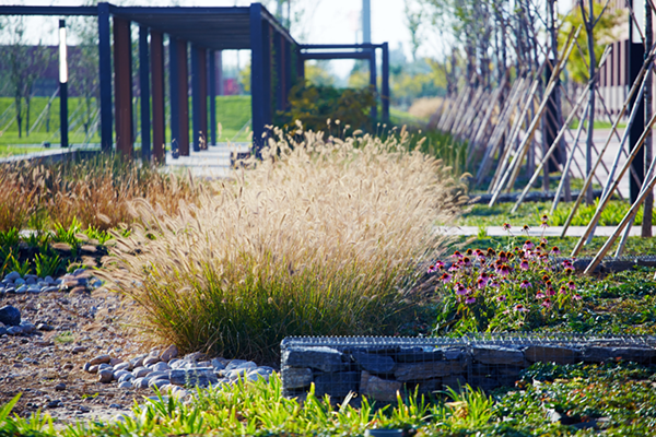 設計以運用鄉(xiāng)土植物與材料為出發(fā)點,打造低成本、動態(tài)生長的景觀,用低維護的后期管理實現(xiàn)園區(qū)環(huán)境的可持續(xù)發(fā)展,展現(xiàn)全生命周期的景致變化與美感,營建面向未來的產(chǎn)業(yè)園區(qū)。