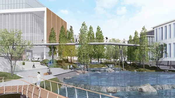在愛爾眼科產(chǎn)業(yè)園整體景觀設計中,阿普貝思構建了多種動物棲息的中央生態(tài)湖,為使用者提供親自然的辦公空間,場地充分考慮收集雨水、內(nèi)部消納,實現(xiàn)場地內(nèi)部的雨水平衡,緩解市政壓力。