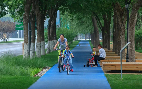 作為代表性的環(huán)京新城,以百萬人口中等城市為規(guī)劃目標的固安,街道是非常重要的城市公共空間,承載著多重的疊加效益。阿普貝思以親自然為理念,對華夏孔雀大道進行全方位升級,景觀海綿一體化的設計不僅解決了暴雨積水的問題,又提升了整體環(huán)境,讓老舊空間煥發(fā)出新的活力,親自然的慢行系統(tǒng),為人們創(chuàng)造了更多生活方式的可能。