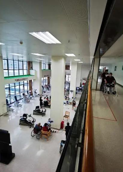 在新建的綜合性醫(yī)院中,由于場地、建筑空間均比較富裕,普遍重視康復醫(yī)學的作用與發(fā)展。在運動治療空間布局方面,一般集中設置在康復醫(yī)學科病區(qū),并以運動康復訓練大廳形式出現(xiàn),綜合醫(yī)院里一般設置在標準病區(qū)單層的敞開空間,突出主動運動特點,既為病患提供積極向上的運動空間,也方便康復設備的系統(tǒng)化布設,如圖3。