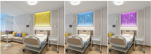 還有一類情景照明則更強調互動性,它會利用充滿創意的照明裝置,預設燈光效果來適應不同的情緒,讓燈光和人產生娛樂性的互動效果,提升環境的情趣。比如,有的醫院設計了這樣一種“燈墻”,當人們在墻周邊移動時,燈光會產生一種色彩流,這是由于固定于墻中心的LED燈被精心編排過,人們移動,感應器就會被激活,然后燈光便會創造出一種水的形象,可以從平靜的潮水轉換成劇烈的彩色氣泡。其實,這類情景照明同樣可以擴展到病房:患者們可以根據房間內的氛圍,自由選擇合適的燈光顏色或效果來契合不同的時段和不同的心情。