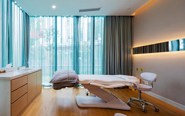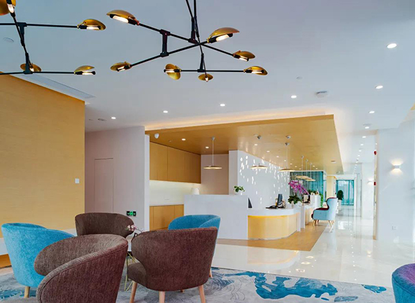 上海紅睦房醫療綜合門診部坐落于楊浦區東外灘南部濱江醫谷-綠地濱江中央廣場,開設了生殖、婦科、產科、醫療美容和口腔等科室。該建筑的體塊形態比較簡約,充分表達著對自然及周邊環境的尊重,其內部空間的設計也在一定程度上秉持著這種簡約,力求達到與建筑形態的內外統一,并且注入時尚因素、延續自然環境,為患者提供健康、舒適、愜意的醫療環境。