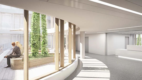 新建筑的空間質量受到多重因素的影響。圓形露天的開放式入口庭院,搭配庭院中心的花園休閑區,可以使患者和訪客懷著舒心和放松的心情進入醫院,從而為他們帶來獨特的體驗。戶外區域的咖啡廳位于庭院中,使患者和訪客在治療和探望的同時,放松身心,進而消除了傳統醫院帶給人們的焦慮感和壓迫感。