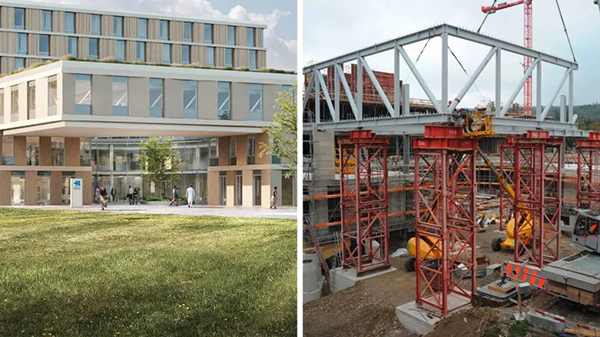 目前,KSB新巴登州立醫院大樓的建設正如火如荼地進行著。本文中,你可以將設計效果圖與施工現場的現狀進行比較。