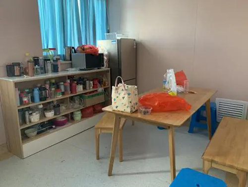 醫(yī)護(hù)人員工作情況具有不確定性,休息時(shí)間較為零散,休息室應(yīng)與主要工作區(qū)域緊密聯(lián)系。休息室內(nèi)應(yīng)配備桌椅、置物架、冰箱、微波爐等設(shè)施,方便醫(yī)護(hù)人員取用。