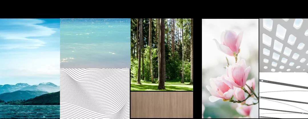 ▲ 設(shè)計元素:山水樹的圖案,從自然界提取機(jī)理;與玉蘭花紋樣相結(jié)合。