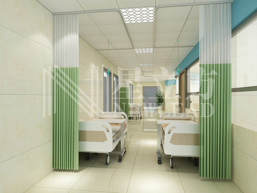 醫院走道臨時床位應用:在預留懸掛點的情況下,只需15分鐘便可以完成一個臨時隔簾的安裝,簡單快捷,極大提高了臨時加床位的私密性,改善了病人的住院體驗。