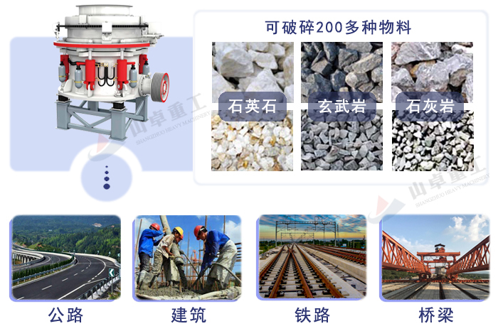 應(yīng)用領(lǐng)域:冶金、建筑、水電、建筑石料破碎、固體廢棄物處理等。